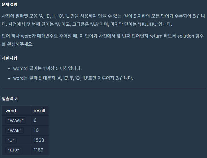 AEIOU의 모든 경우의 수 해봐야 그렇게 많지 않기 때문에 전부 탐색하기에 시간문제도 없었다.