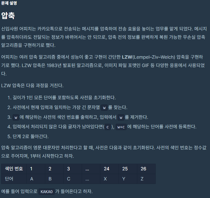 이때, 그 문자가 사전에 없을때 이전 문자 기준으로 사전에 등록된 번호를 받아야하기 때문에 문자를 붙이기 전 x에 잠시 담아줍니다.