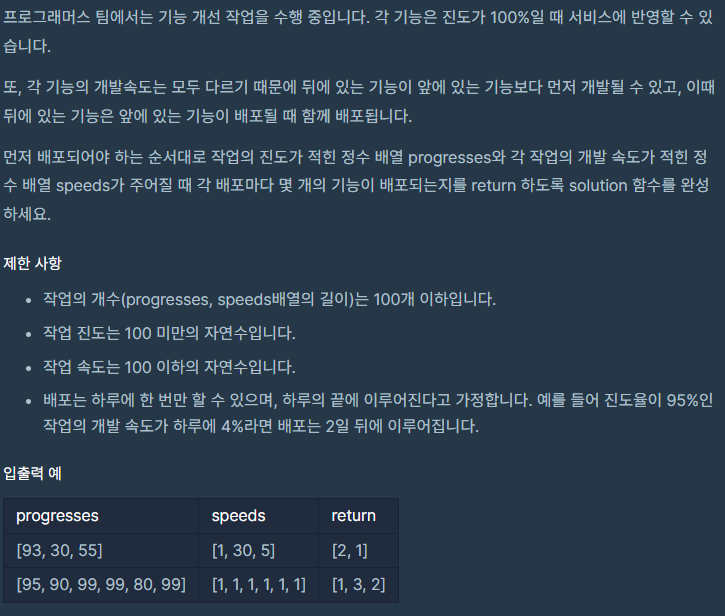 * 100에서 현재 진행된 기능을 빼고 이를 이용해 남은 일자를 구해줍니다.