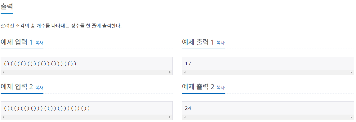 고려하다보니 쇠막대기가 줄어들 때, 막대기를 1개 추가해주면 된다는 것을 알아차리곤 쉽게 해결할 수 있었다.