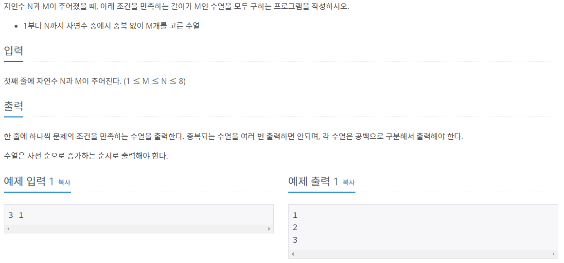 문제 바로가기 ☞ https://www.acmicpc.net/problem/15649