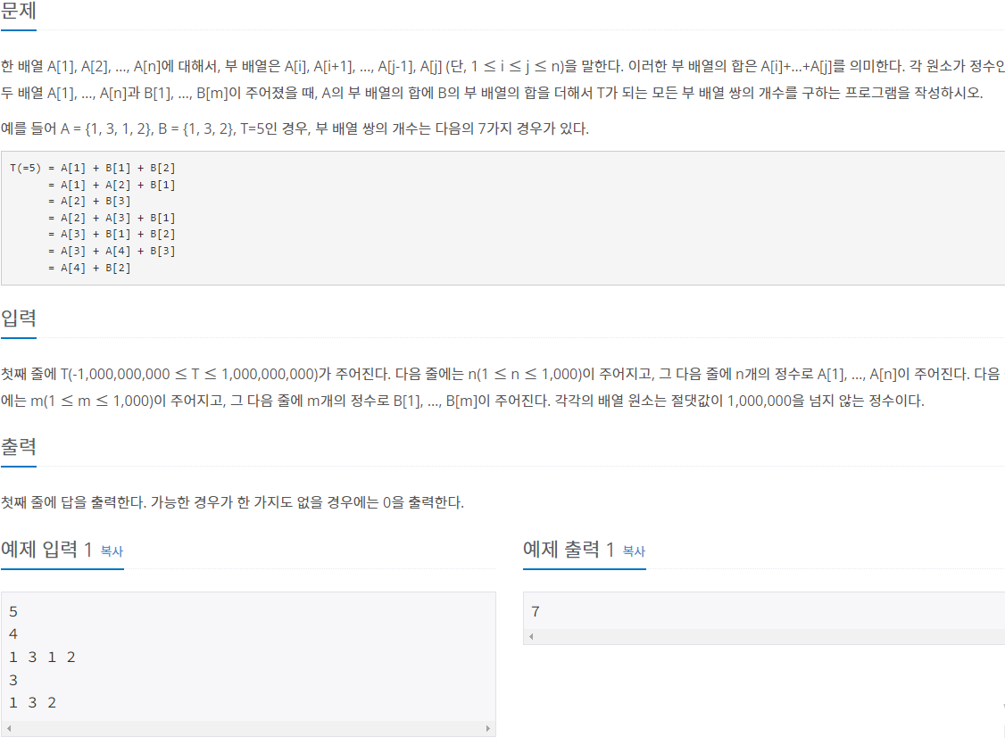 문제 바로가기 ☞ https://www.acmicpc.net/problem/2143