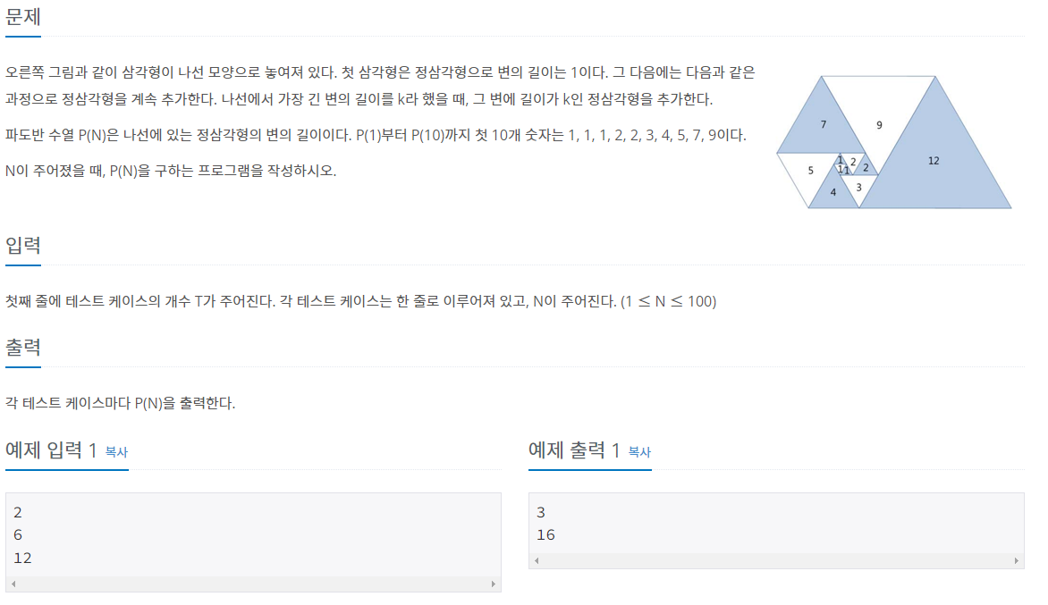 문제 바로가기 ☞ https://www.acmicpc.net/problem/9461