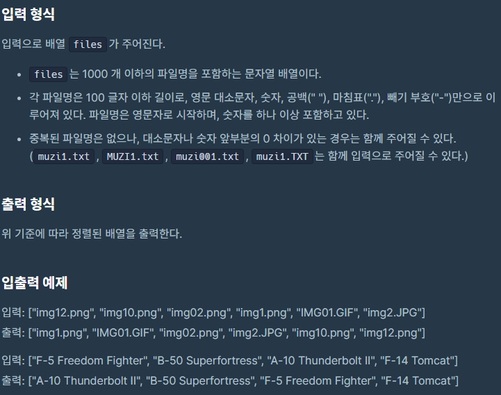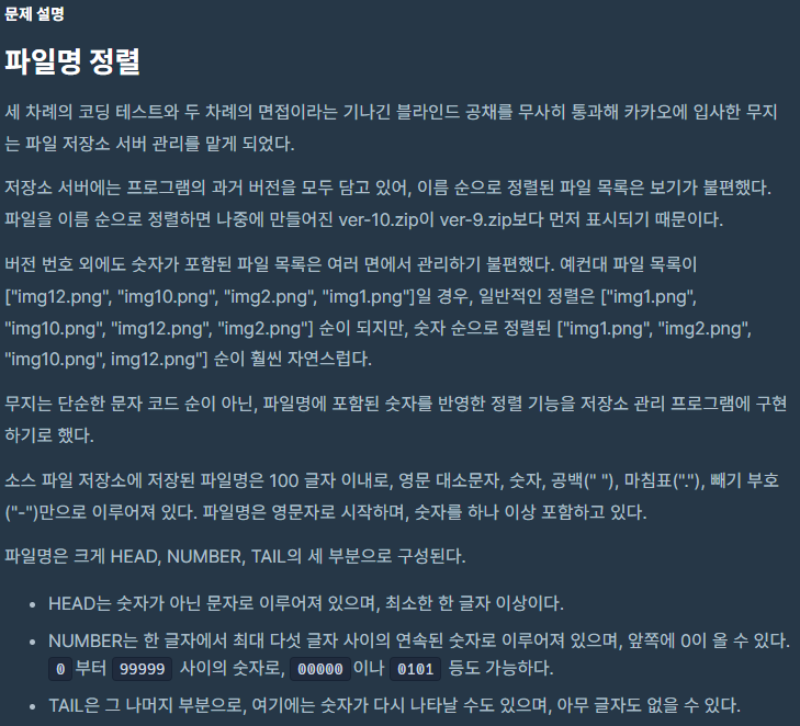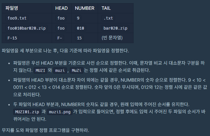 문제 이름 : [3차] 파일명 정렬