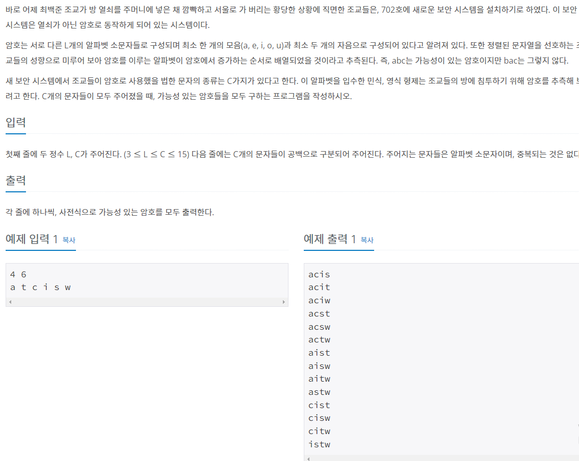 문제 바로가기 ☞ https://www.acmicpc.net/problem/1759