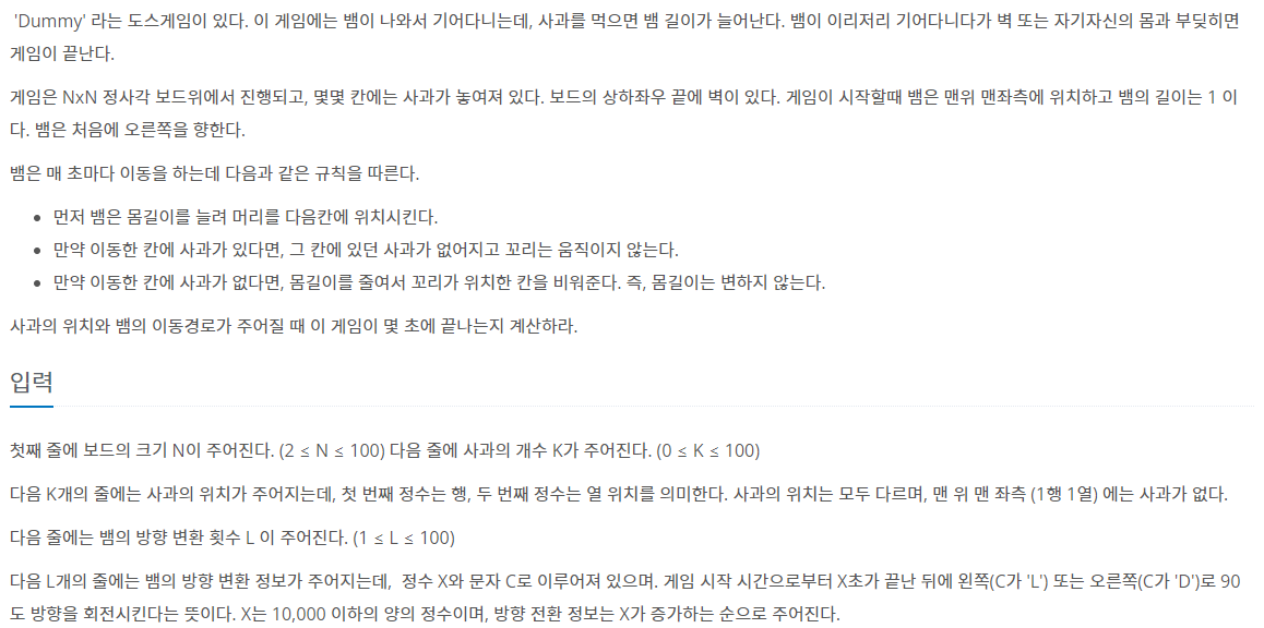 문제 바로가기 ☞ https://www.acmicpc.net/problem/3190