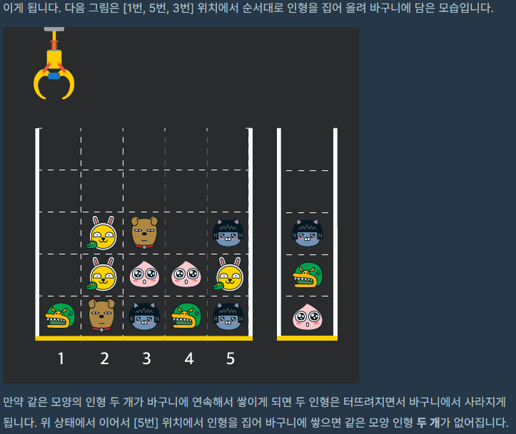 문제 이름 : 크레인 인형뽑기 게임