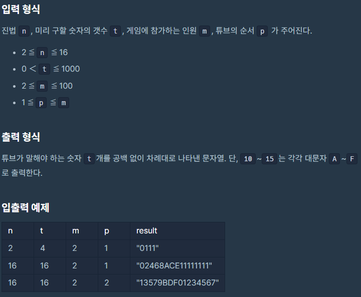 문제 이름 : [3차] n진수 게임